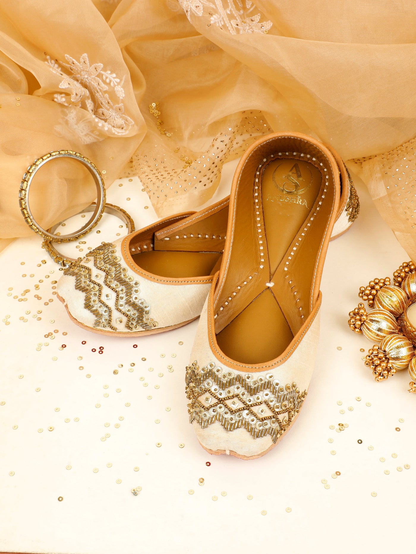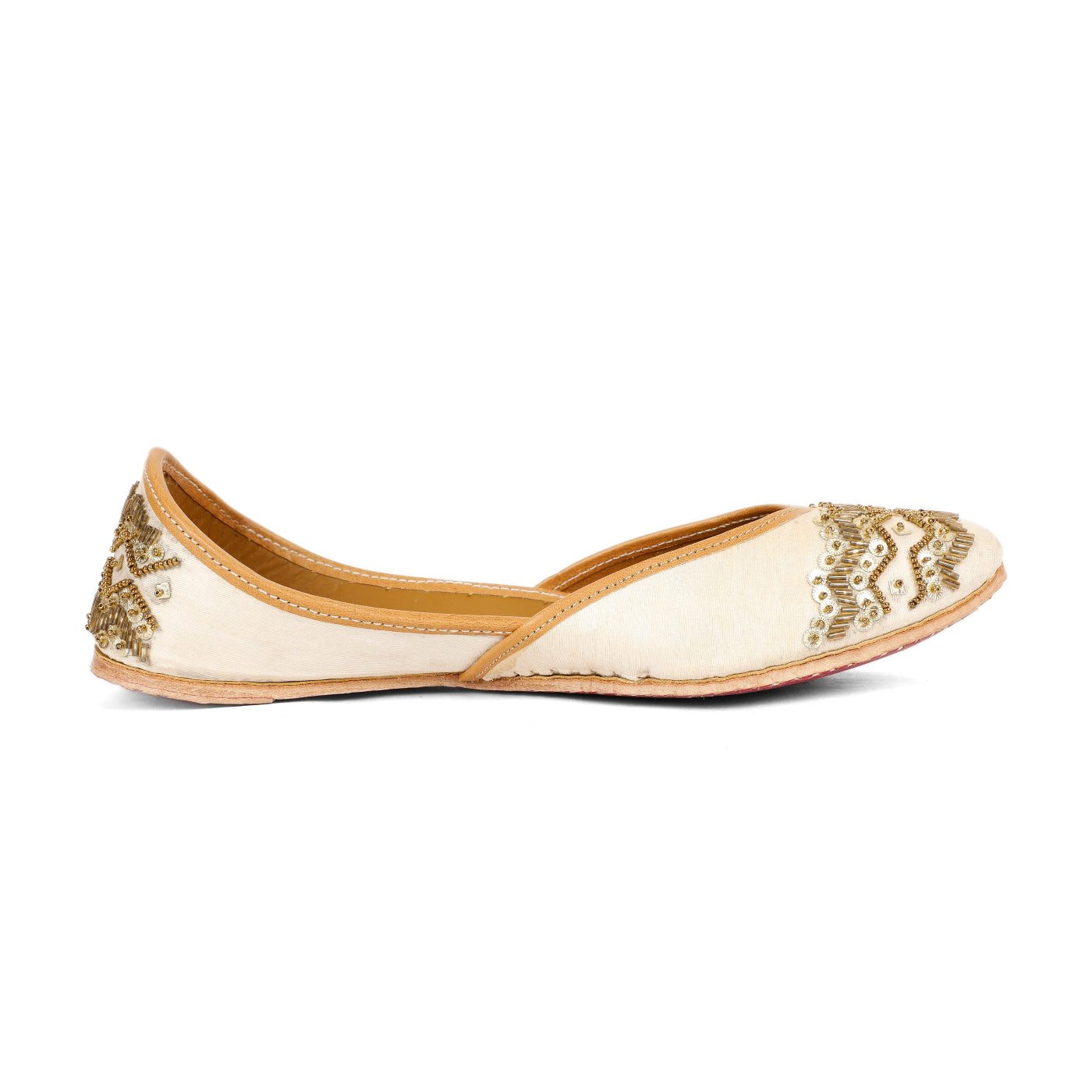 Finished with a cushioned insole and classic jutti silhouette, it ensures lasting comfort for long celebrations. Its neutral tone makes it a versatile choice—perfect for brides, bridesmaids, and festive ensembles alike.