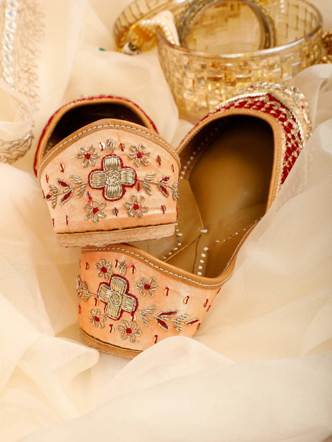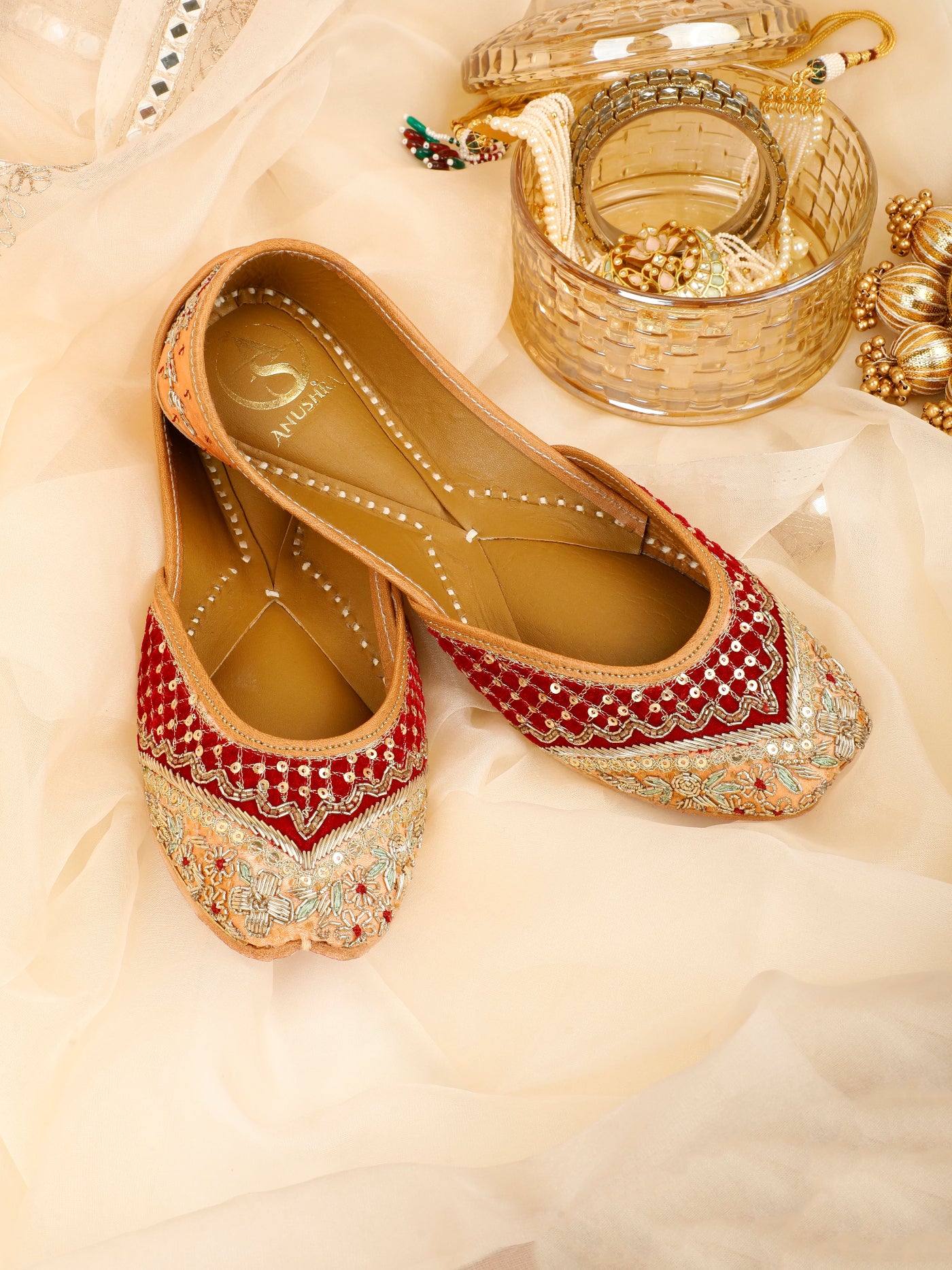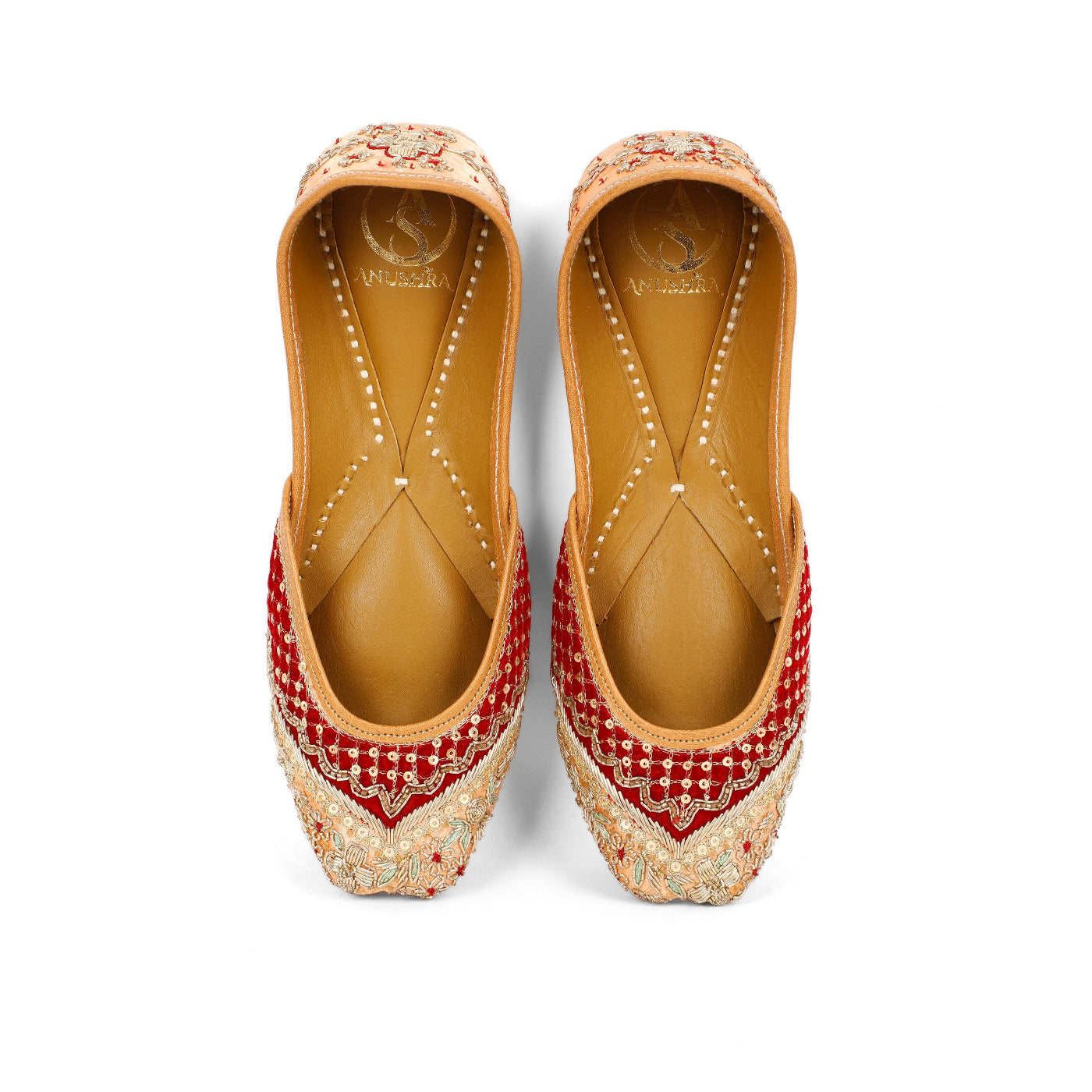 Finished with a soft cushioned insole and a classic jutti silhouette, it offers comfort without compromising on grandeur. Perfect for weddings, receptions, and festive soirées, this jutti pairs beautifully with lehengas, silk sarees, and heavy ethnic ensembles.